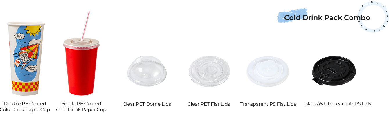 Yongrui Packaging tilbyr en rekke papirkopper og PET-kalde drikkekopper, kompatible med forskjellige lokk, koppholdere og sugerør, som serverer forskjellige drikketyper (varm drikke, kalde drikke, smoothies, etc.). Med en one-stop-løsning for ulike kunde- og markedsbehov, er Yongrui forpliktet til å gi kaffebareiere og gründere pålitelig driftsstøtte.