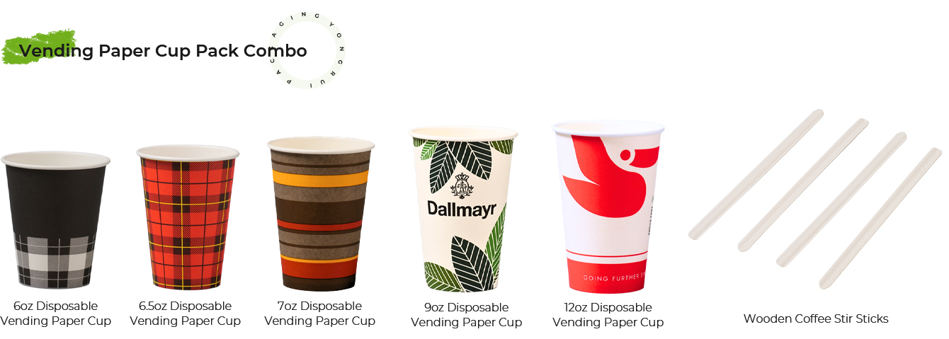 Tilpasningstjenester Vi tilbyr tilpasning av logomateriale, og anbefaler på det sterkeste vannbaserte, bestrøkne papirkopper og PLA-forede papirkopper for å hjelpe operatører med å overholde miljøtrender. | |